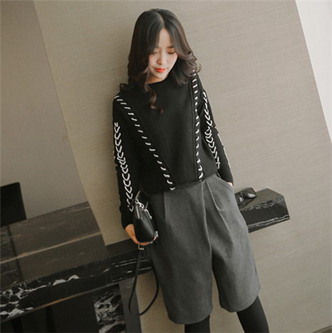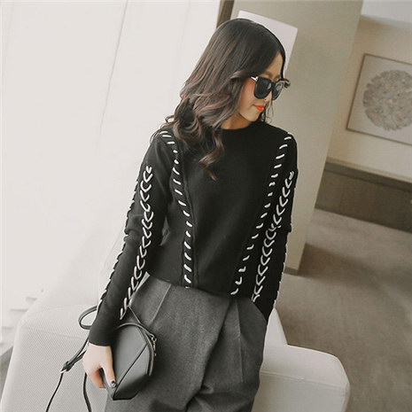 套头宽松黑色针织打底衫女士百搭上衣